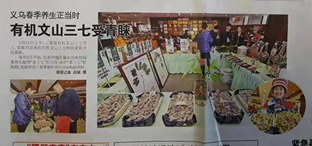 ? ? ? ?2019年3月13日上午,浙江義烏市三溪堂有機三七養(yǎng)生文化節(jié)上,首批空運來的苗鄉(xiāng)有機三七受到了當?shù)厥忻竦母叨仍u價。