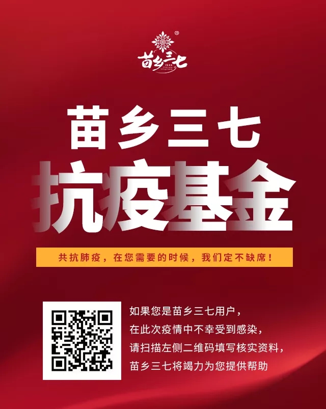 三七雖好,不是神藥!如果您是服用苗鄉(xiāng)三七的用戶,在此次疫情中不幸感染并確診為新型冠狀病毒肺炎,請識別上圖二維碼告訴我們,我們將竭力為您提供幫助!