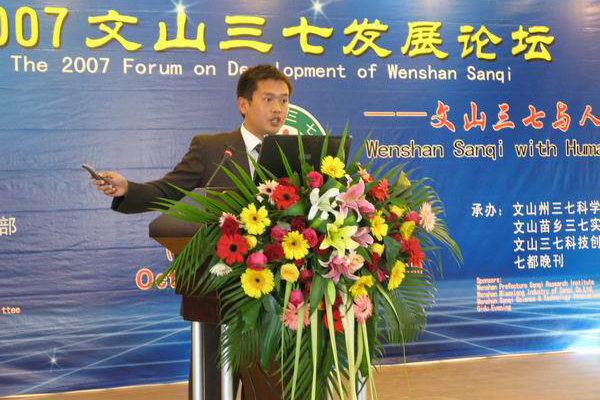 “2007年文山三七發(fā)展論壇” 于10月26日在文山城雙贏酒店舉行,來自日本和我國臺灣、上海等地的11位專家學(xué)者,解說三七國際市場的新動向,探討三七產(chǎn)業(yè)健康快速發(fā)展之道,為明年4月舉行的慶祝建州50周年暨第三屆國際三七節(jié)營造良好文化氛圍。