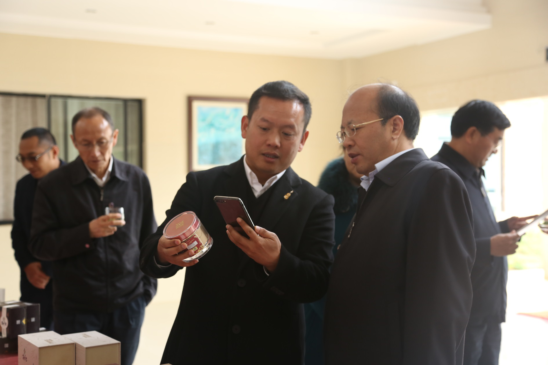 在良繁中心的產品展示廳,余董事長向李副書記一行介紹了苗鄉(xiāng)有機三七系列產品并現(xiàn)場演示了產品二維碼溯源系統(tǒng),通過APP終端掃描二維碼可清晰追溯到產品從一粒種子開始到成品的任何一個種植、加工、銷售環(huán)節(jié),確保了用戶可以買到安全可靠的三七產品。